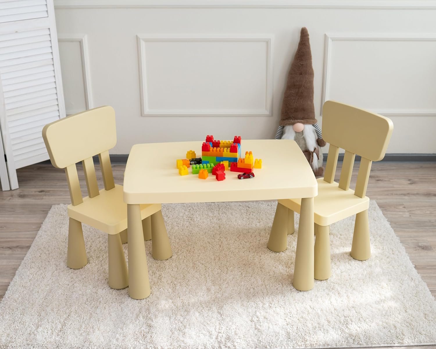 - [STURDY & SAFE MATERIAL] Kids’ tables and chairs are made of solid and non-toxic PP materials, safe to accompany your kid every happy day. Sturdy plastic construction supports up to 110 lbs, with rounded corners and stable legs for added safety. Plus, with certifications, you can have peace of mind knowing that your child is protected